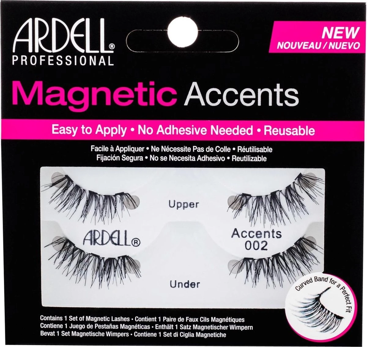 Ardell Magnetic Accents bevat 1 set magnetische kunstwimpers om de ogen te accentueren. Voorzien van een gebogen band voor de perfecte pasvorm.