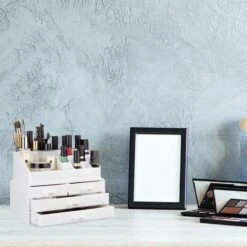 A&K 2in1 Make-up Organizer – 4 Lades Cosmetica Opbergdoos – Kaptafel – Wit
