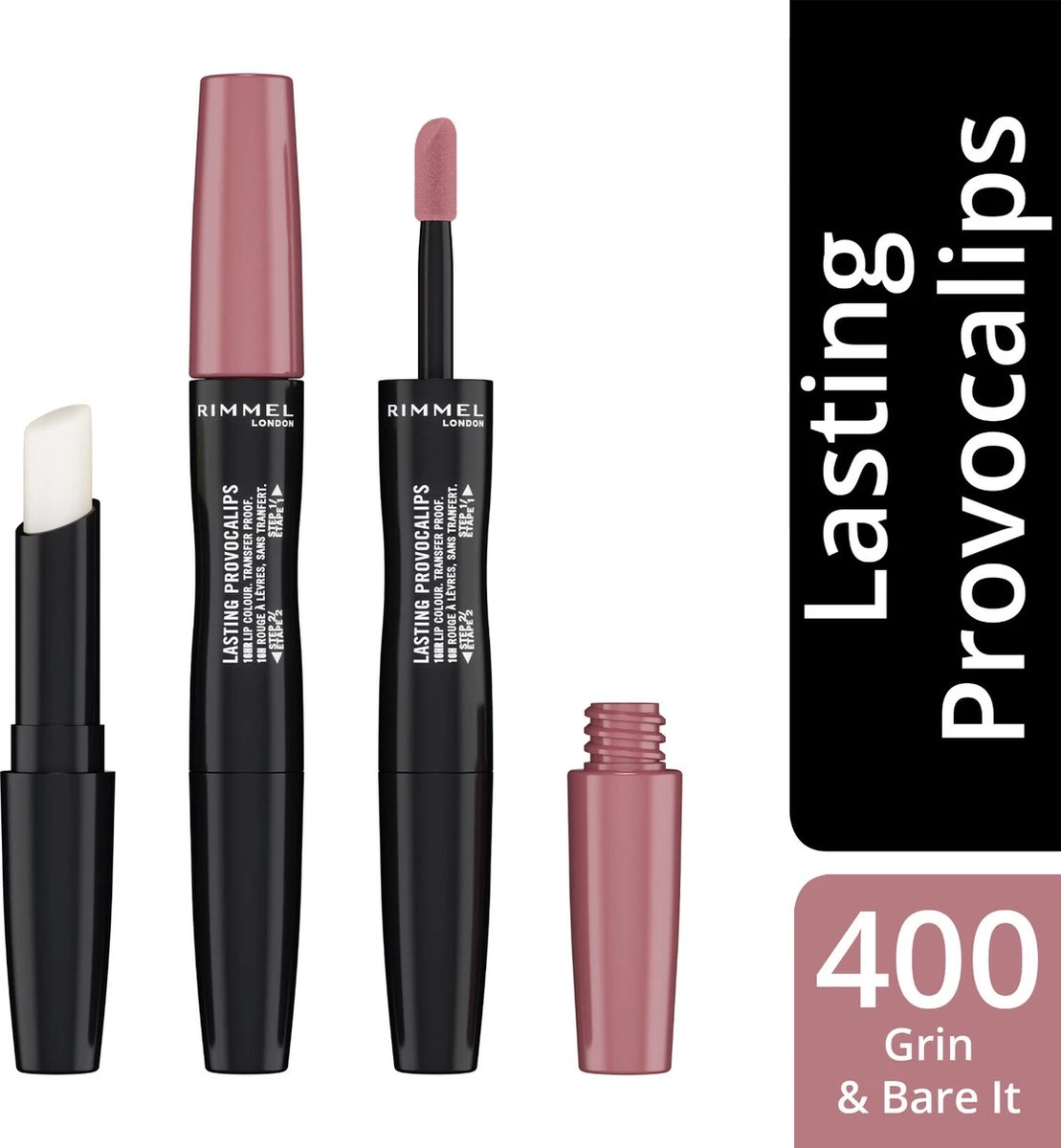 De 2-staps applicatie begint met een kleur intensieve vloeistof, gevolgd door een hydra-balsem topcoat om de make up op zijn plaats te houden. Comfortabel op je lippen, het zal niet aankoeken, schilferen of uitdrogen. Zachte, rommelvrije, nauwkeurige applicatie. De Rimmel London Lasting Provocalips lipstick is verkrijgbaar in een reeks van 12 tinten.